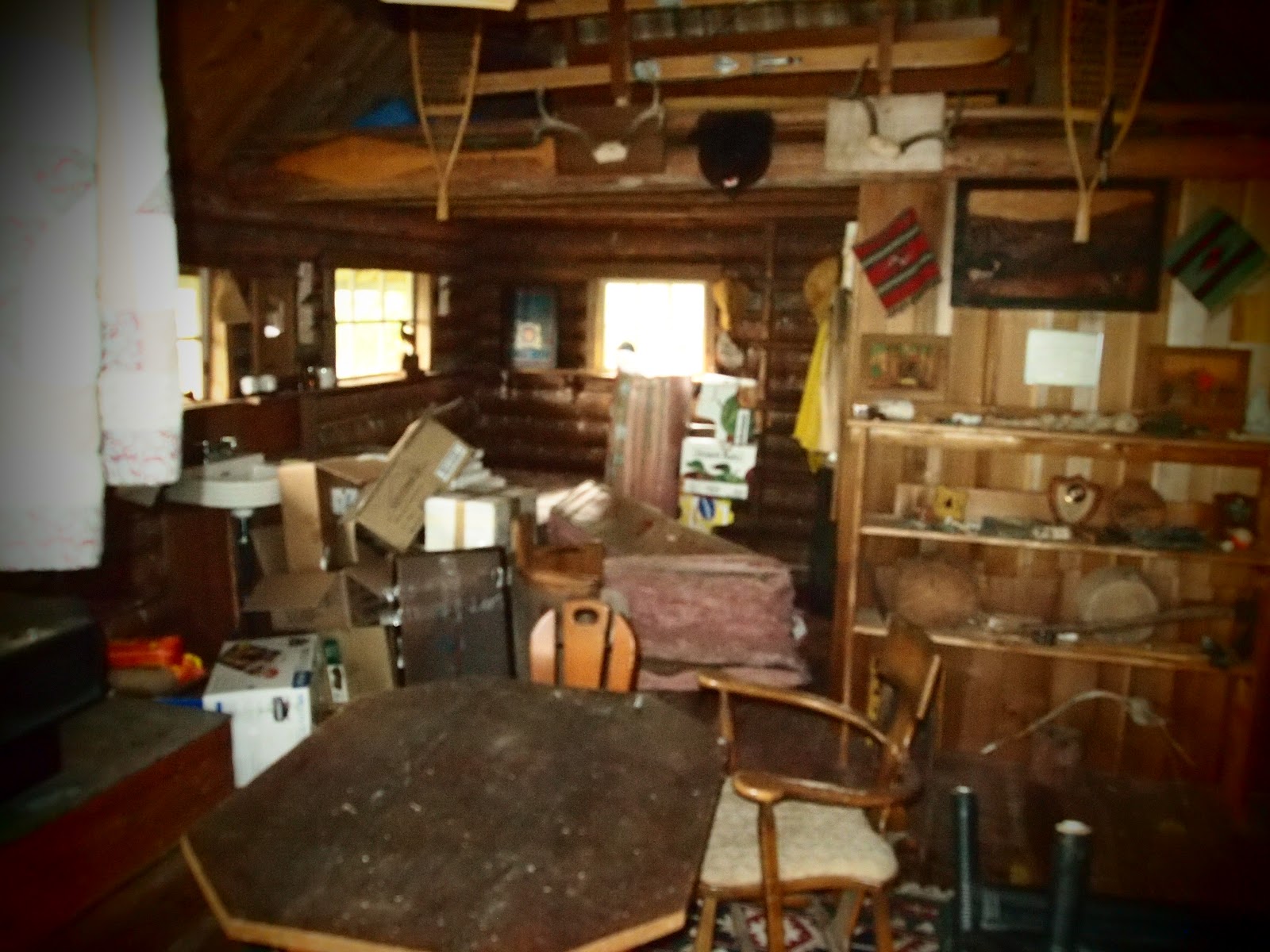 So my parents bought a new house a few months ago and I haven't had a chance to visit until about a month ago. Their house is accessed via a long, forested road with only a handful of neighbors to be bothered by. While I was out exploring the surrounding property I stumbled across this little gem tucked away on the next door lot. Naturally I tried to get in to the cabin but there was a padlock on the front door preventing curious intruders from tresspassing. After a phone call from my mother to the neighbor we figured out that it had been built by the neighbor's father in the 60's as a sort of man cave/poker den. He offered to show me around and I gladly accepted. It was amazing. All of 300 sq. ft of it was heated by a central woodstove that could probably roast you out of the house. It had 2 huge picture windows with a perfect view into the woods. Turns out this guy was a hobbyist woodworker/carver. Those 2 chairs were built by him and his work bench still sits in the corner. Unfortunately the cabin has become somewhat of a catch all/storage space for his son who seemingly only sets foot in there once or twice a year. I figure if I just post up on the front porch with a shotgun he'll pretty much have no choice but to give it to me. Right?